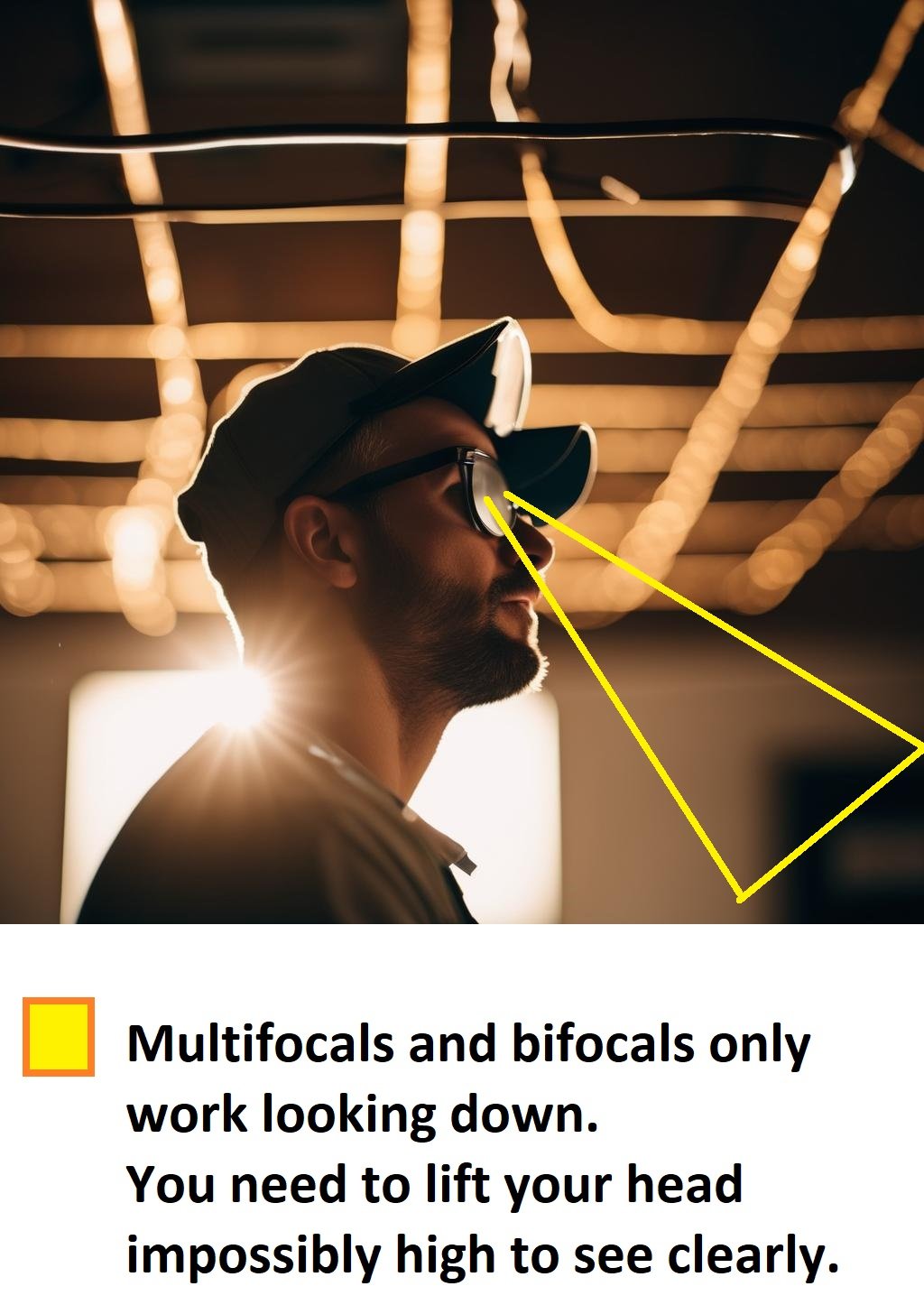 Multifocals only work when you can look straight or down at an object.