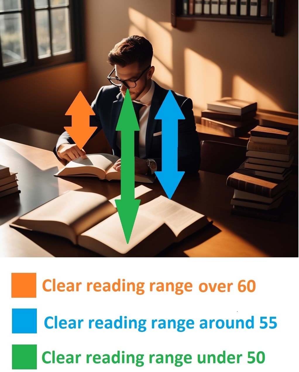 The clear reading range reduces significantly after the age of 60.